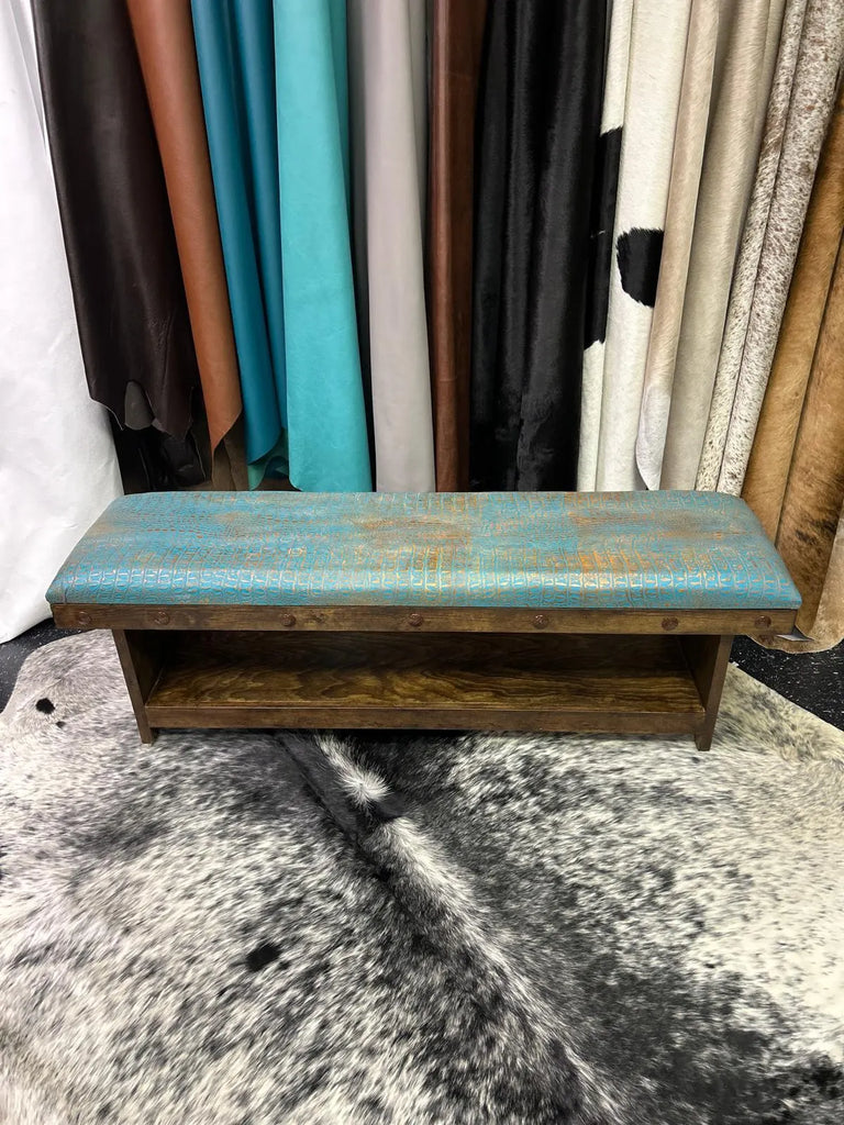 Cowhide Bench Embossed Crocodile Cowhide Leather - Color Turquoise - 5 Foot Solid Wood Bench (Copy)