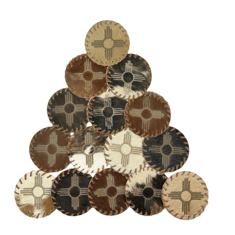 Zia Cowhide leather Coasters Assorted - Size 4.5 Inches - Genuine Coaster Designs