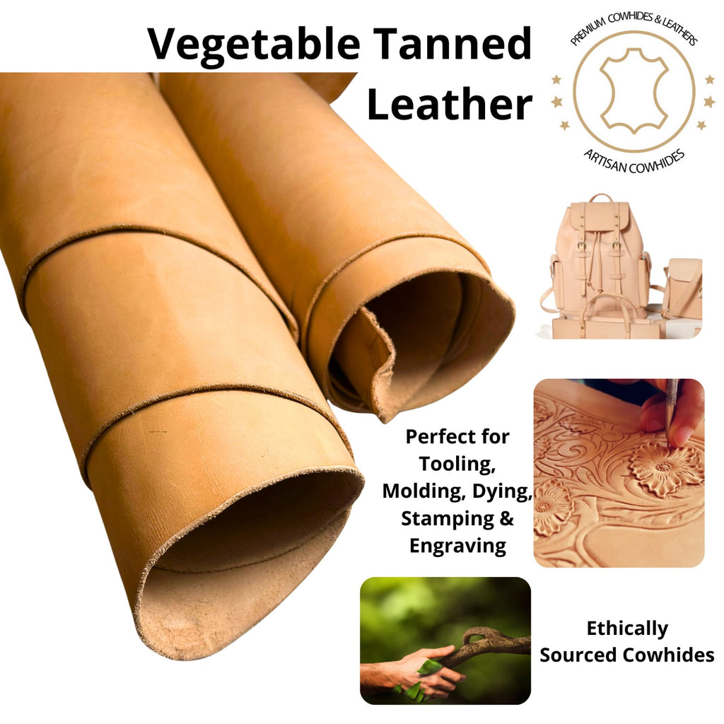 ArtisanCowhides Genuine Veg Tan Leather PRECUT – Cowhide Vegetable Tanned Tooling Leather Sheets for Craft – (2.4mm-3.2mm) 5-6oz &7-8oz – Natural Color - 9"x11" ,12"x12" ,12"x24" ,24"x24"
