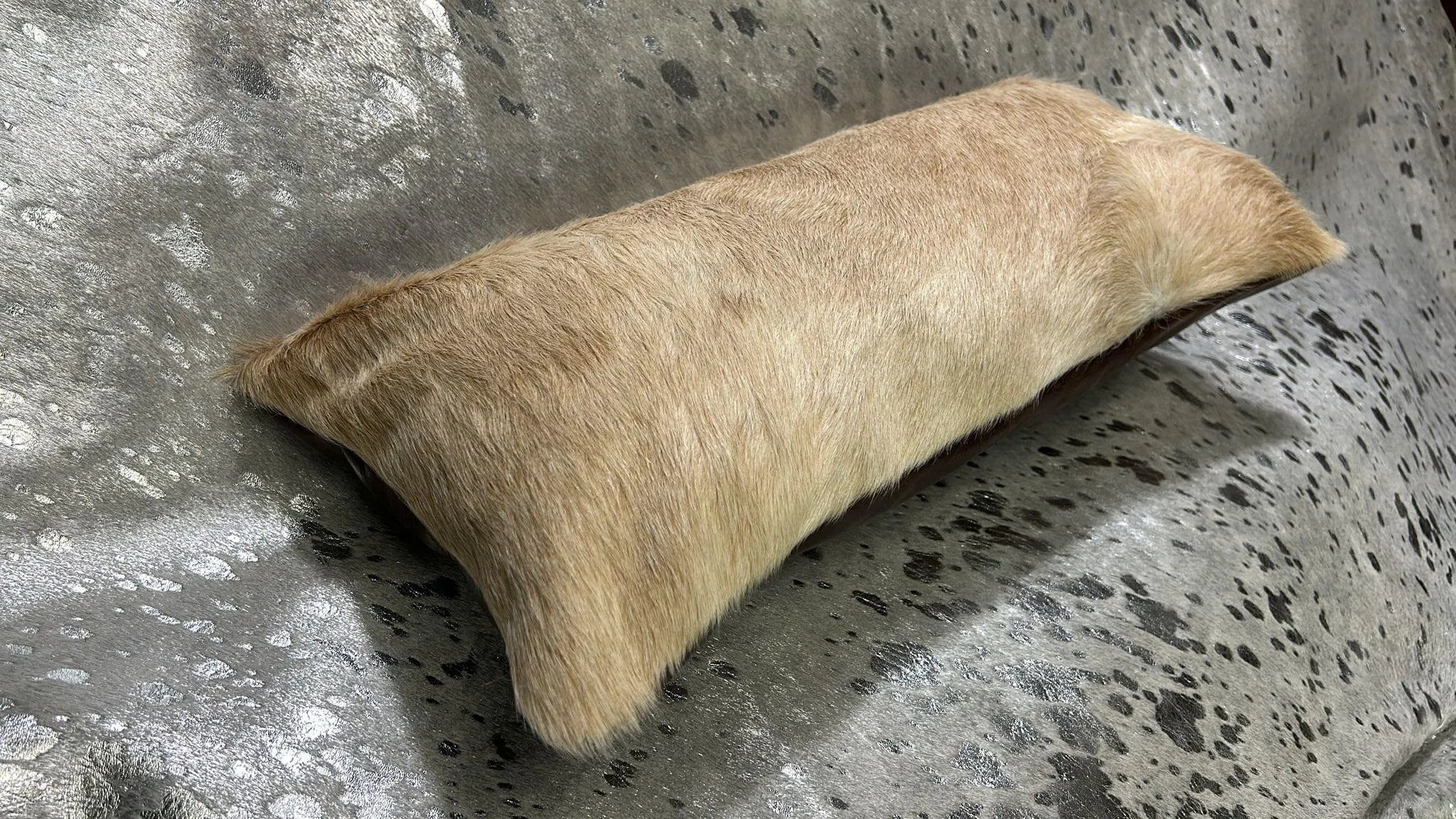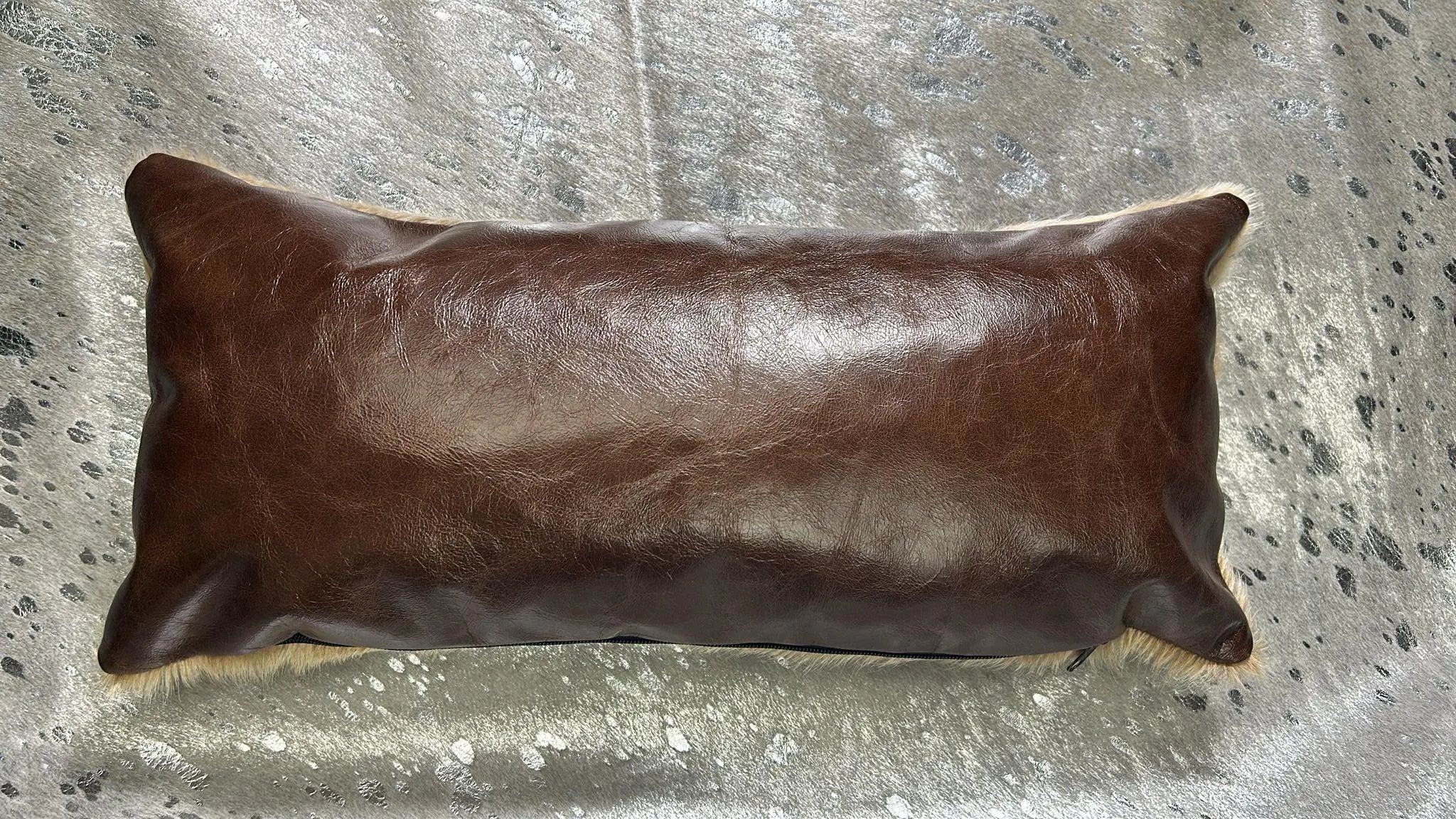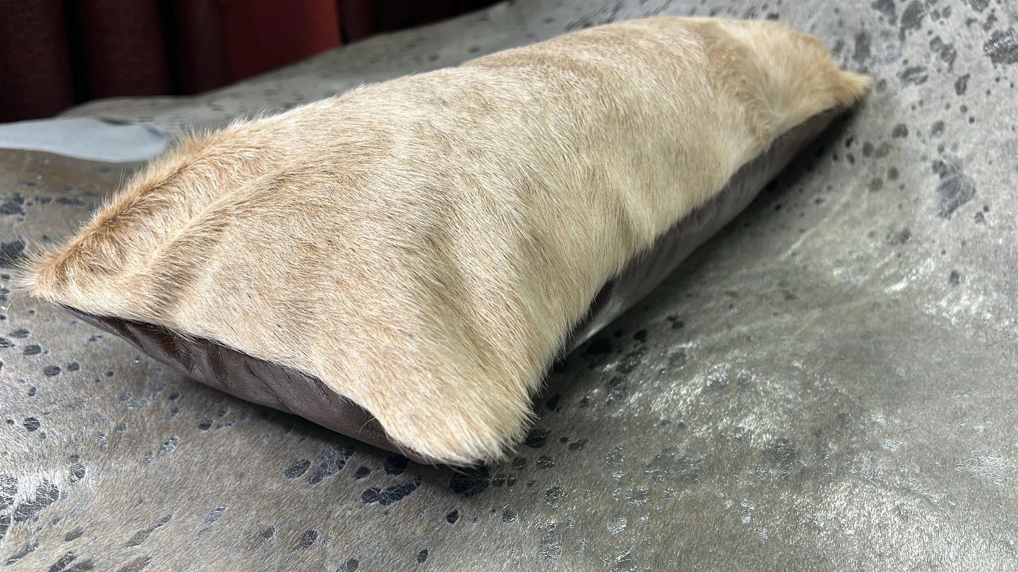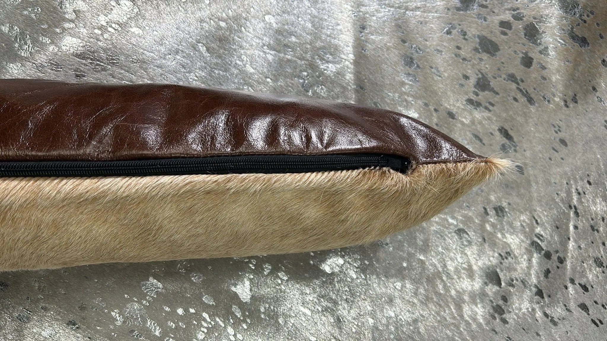 Cowhide Pillow 21"x9.5" Beige Cowhide & Brown Distressed leather Pillow Cover