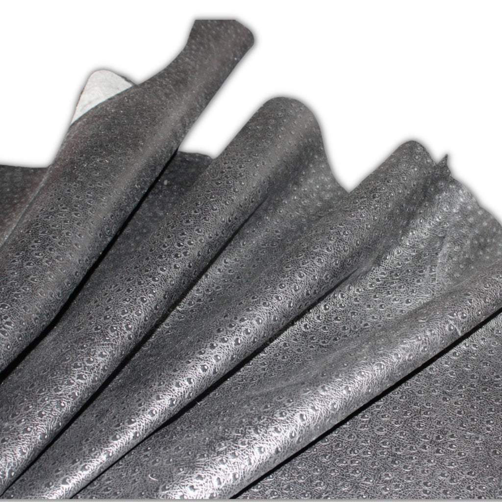 Ostrich Leather Embossed Leather Black: Leather 3 .5- 4.0 oz. | 1.4 - 1.6 mm - Leather for Projects - Leather Craft