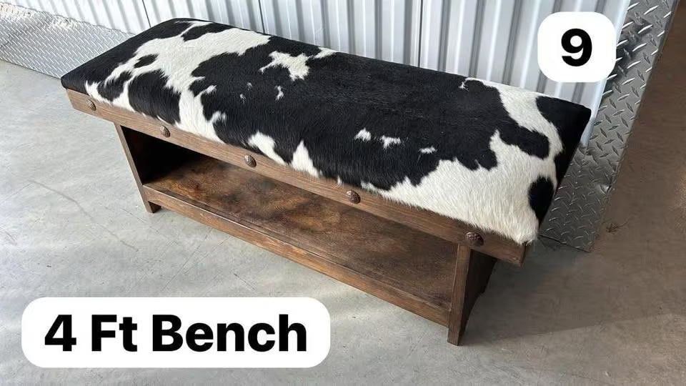 Cowhide Bench Black & White - Made of Pine Wood / 48'' long x 17'' wide x 19'' tall.