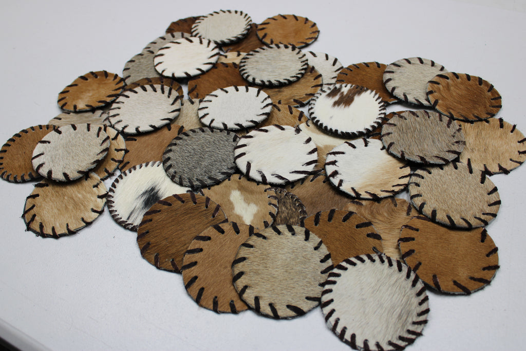 Cowhide Leather Coasters Assorted - Size (4.5 Inches) - Genuine Coaster Designs