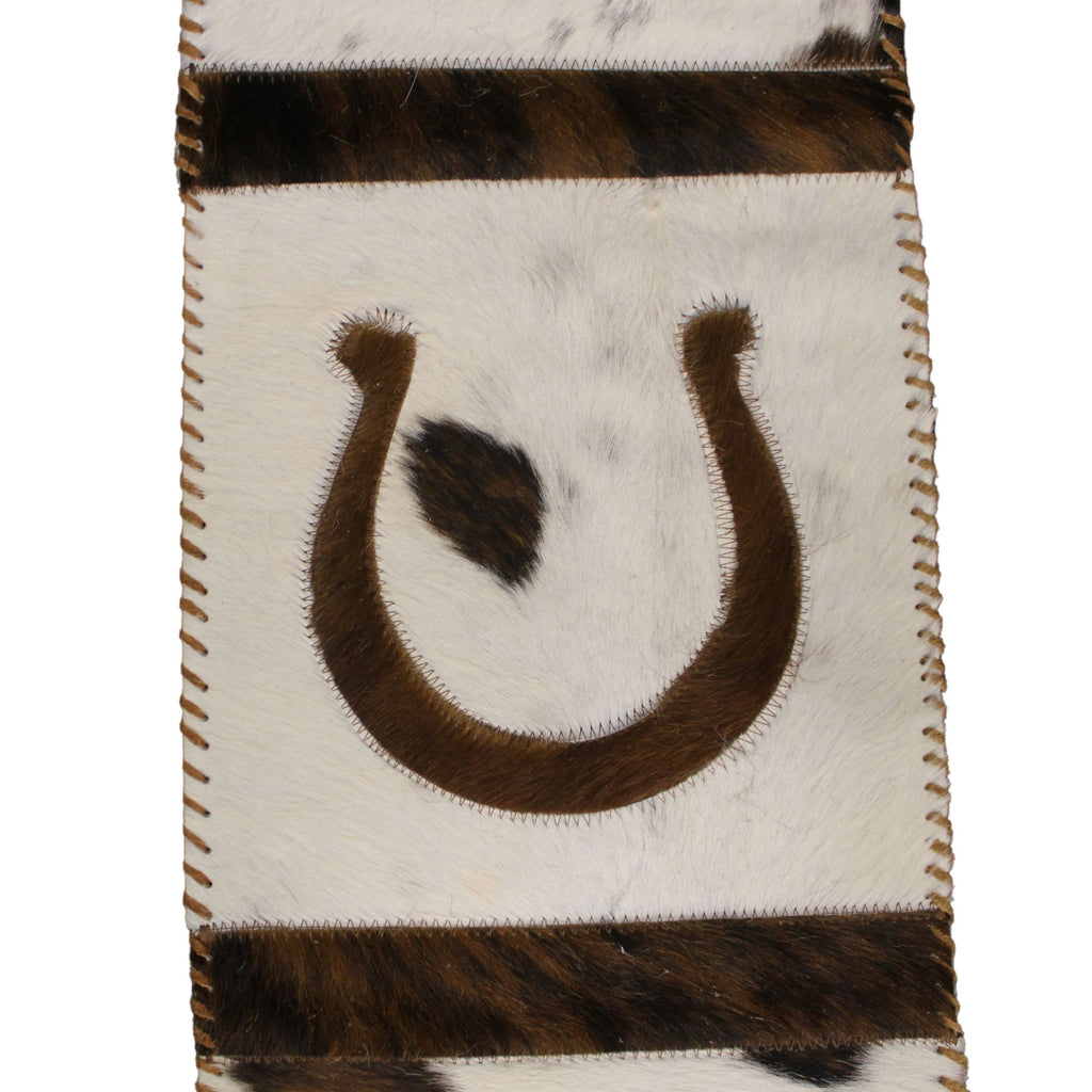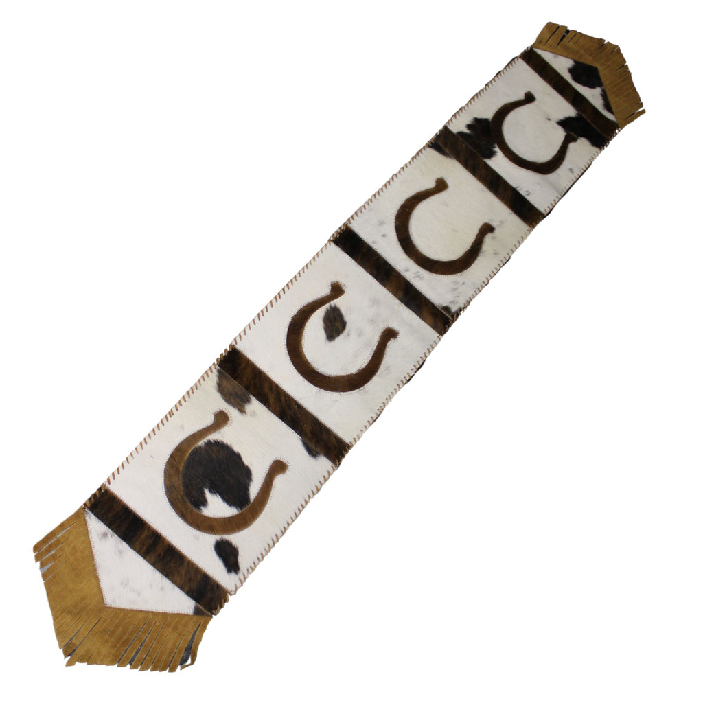 Horseshoe Pattern Cowhide Table Runner on Gray Cowhide