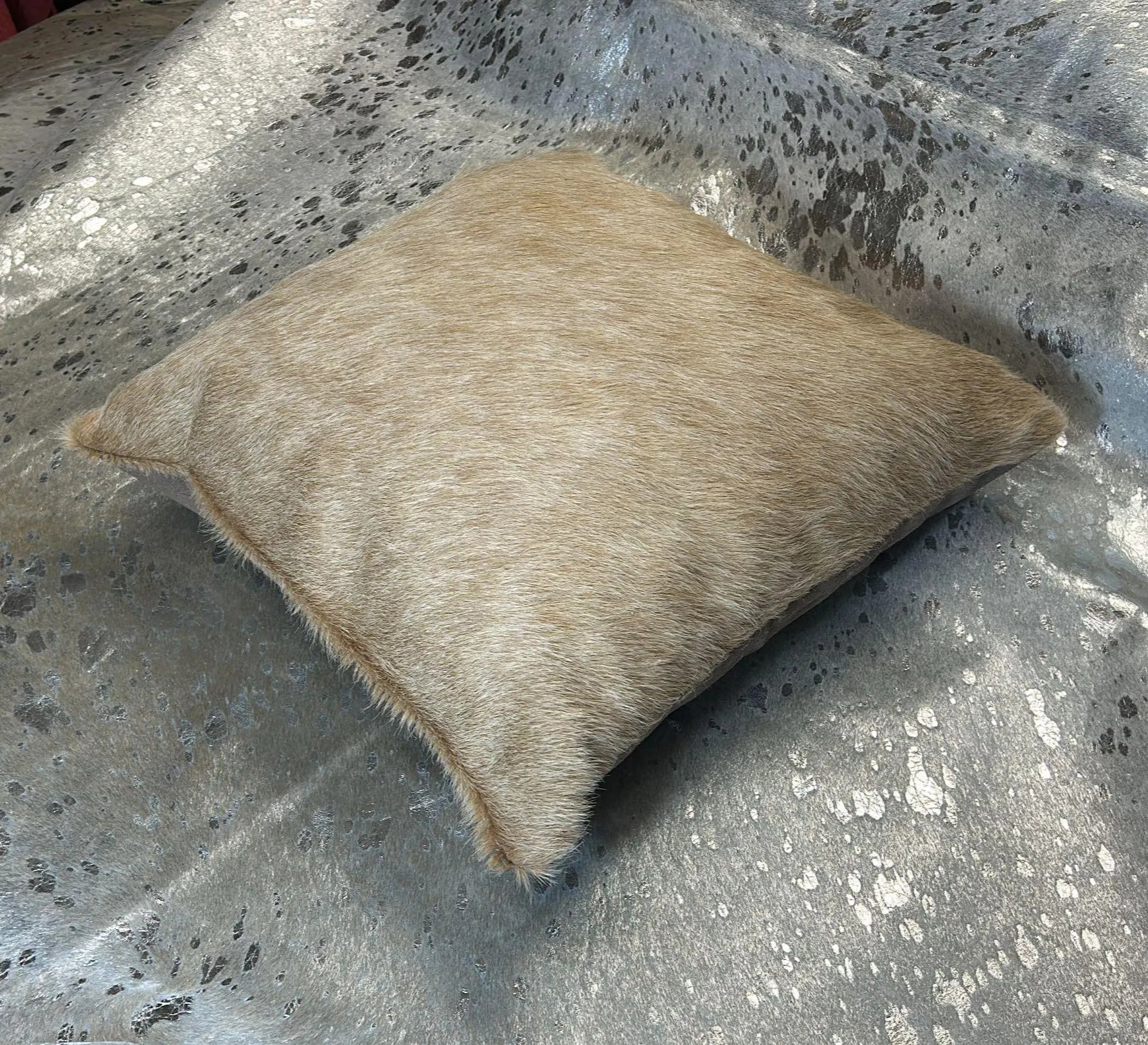 Light Beige Cowhide Pillow Cover | 18"x18" | Brown Suede Back - New Cowskin Cushion Cover