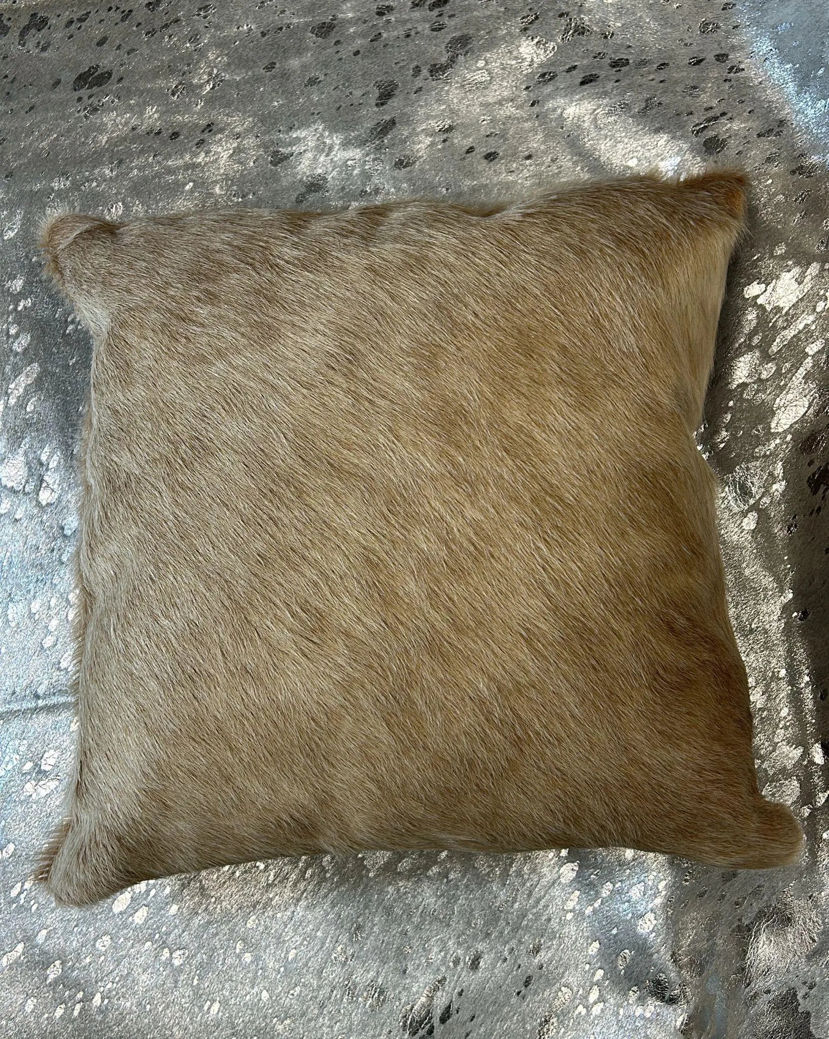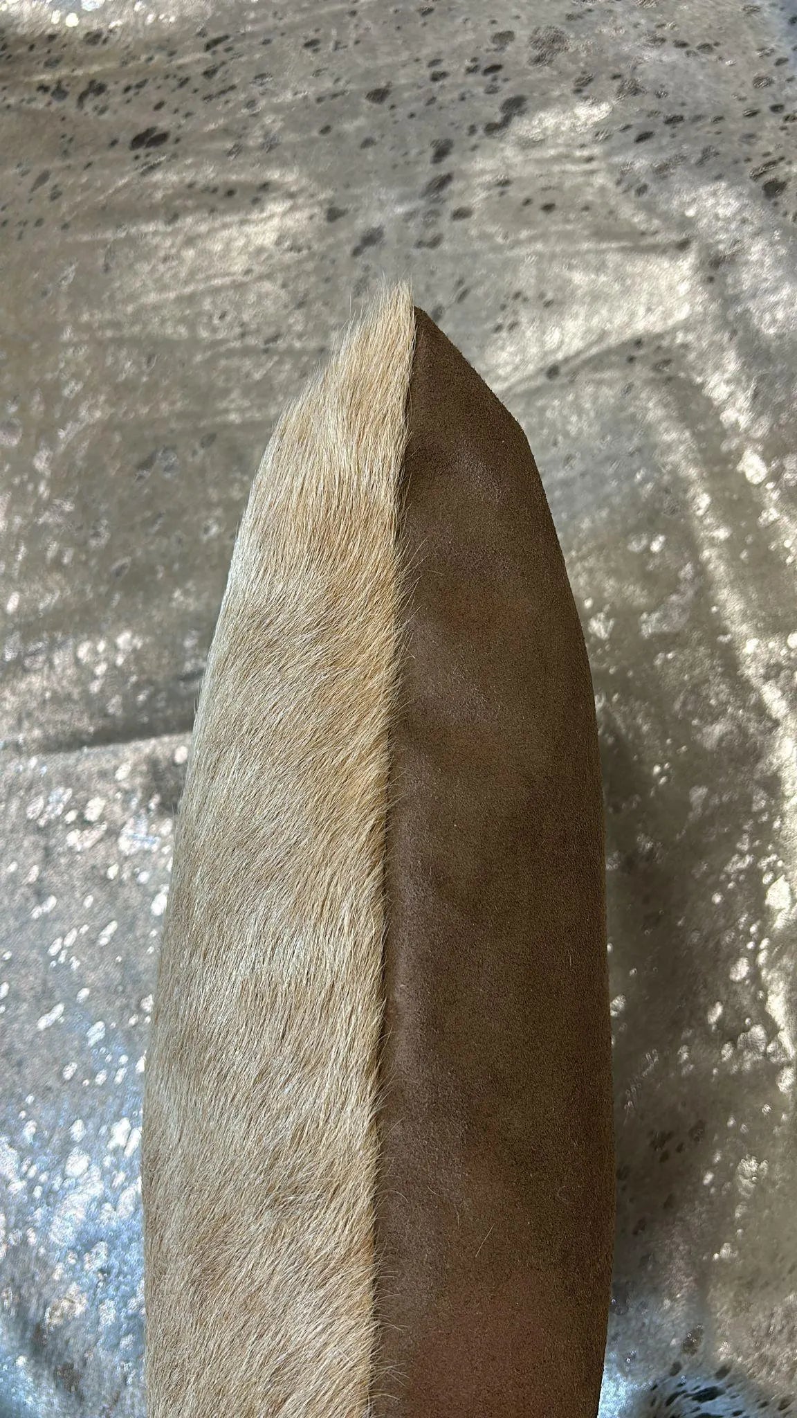 This pillow is Beige hair on hide on one side and Brown suede leather on the other side.