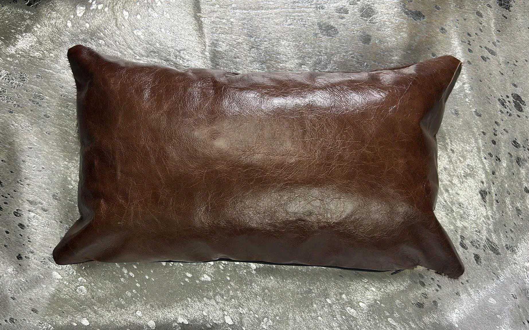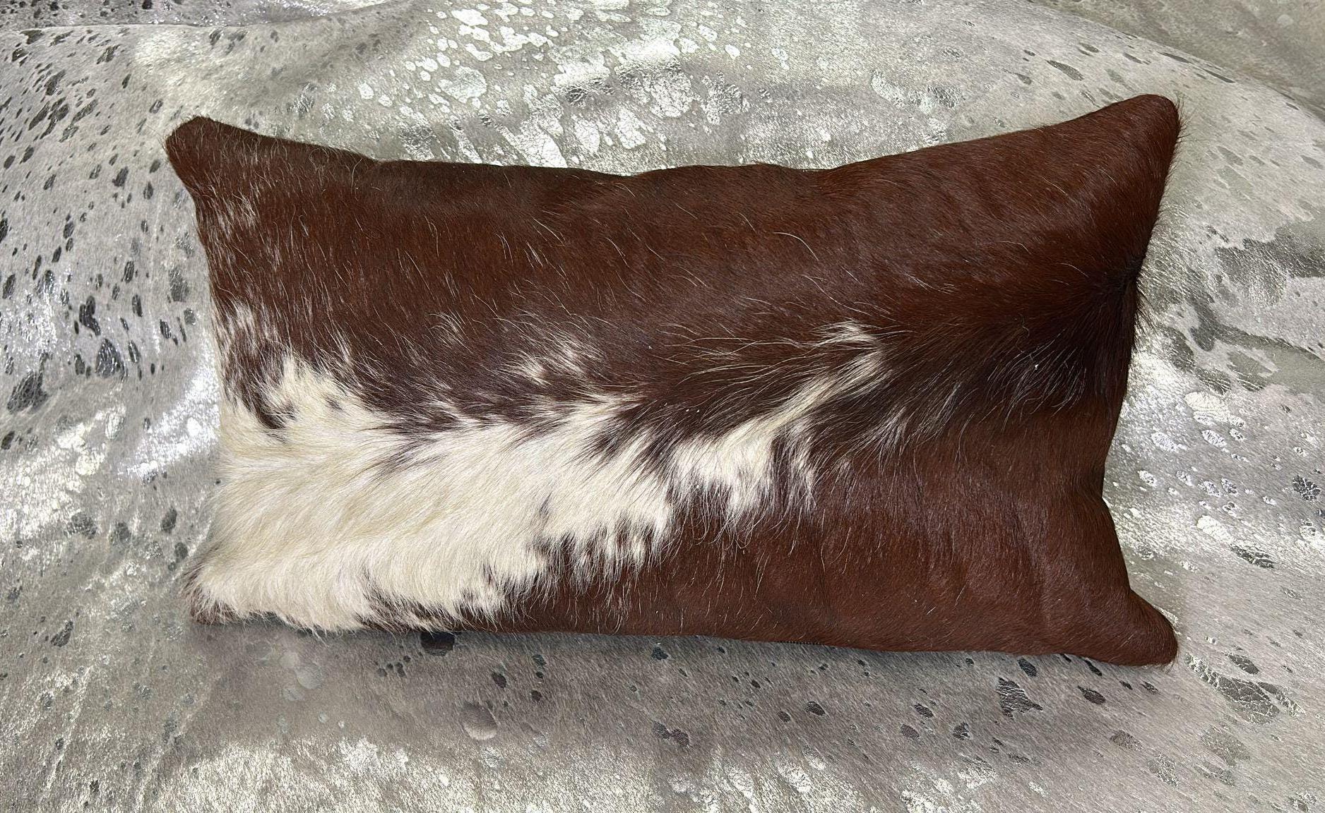 Cowhide Pillow 22"x12" Reddish Brown & White Cowhide with Brown Distressed Leather Pillow Cover