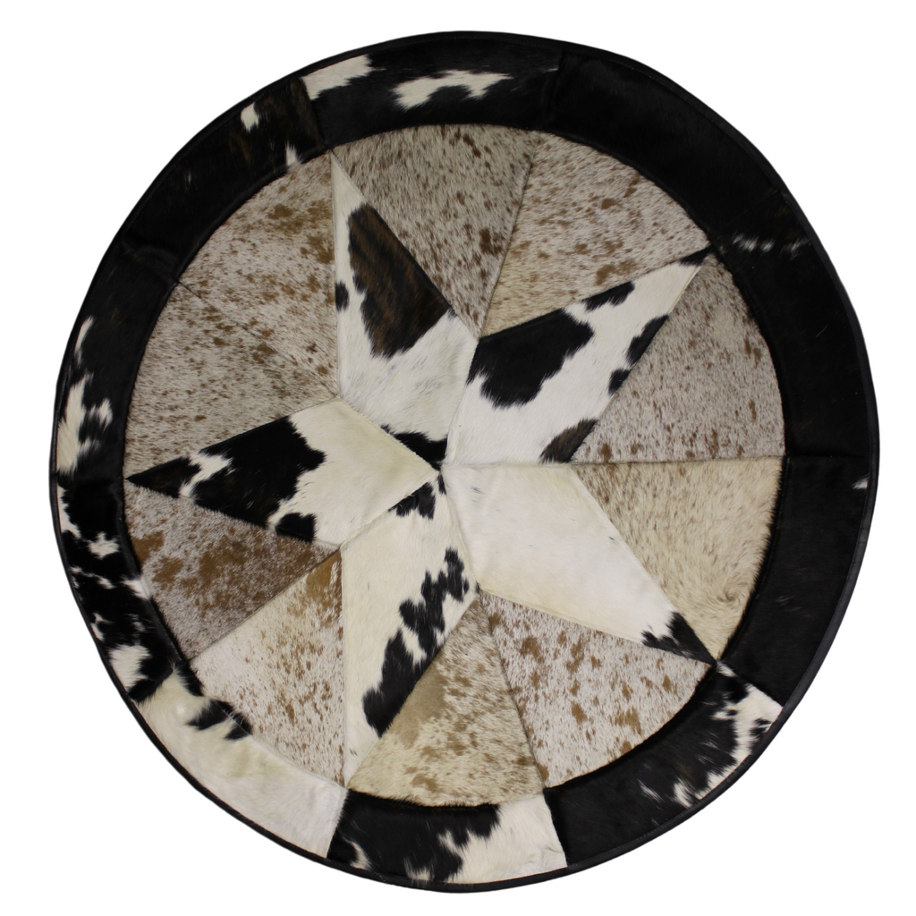 Round Patchwork Star Cowhide Rug - Size 40 Inches Cow Hide Rug