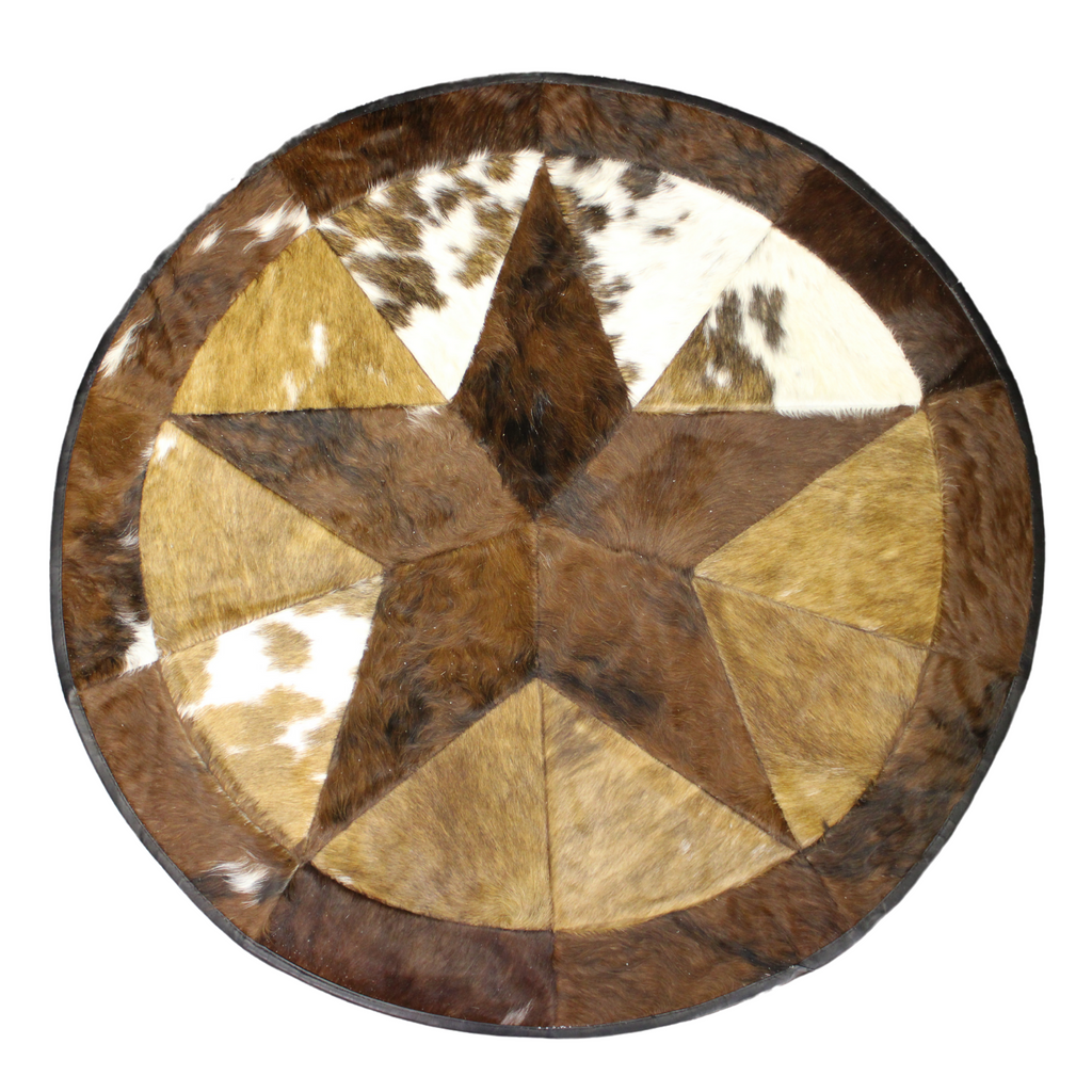 Round Patchwork Star Cowhide Rug - Size 40 Inches Cow Hide Rug