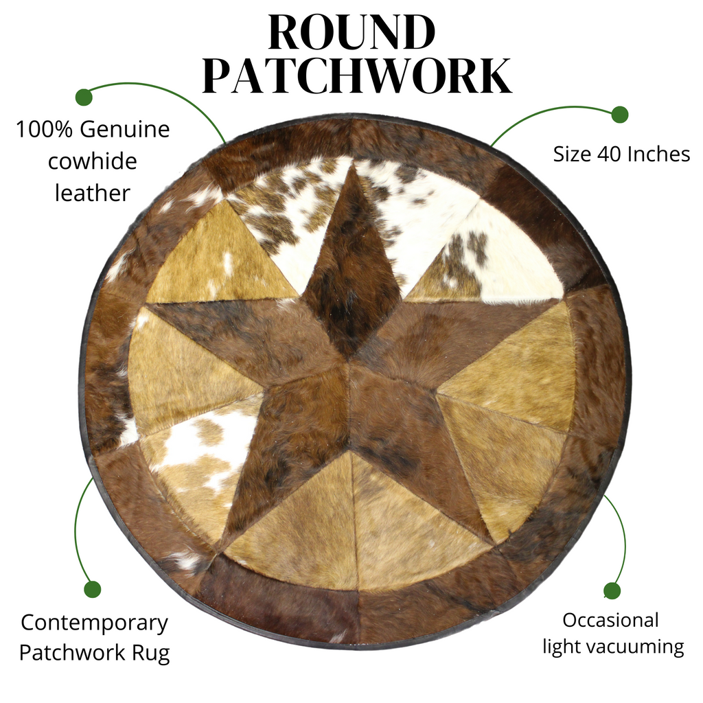 Round Patchwork Rug Star Cowhide Rugs - Size 40 Inches