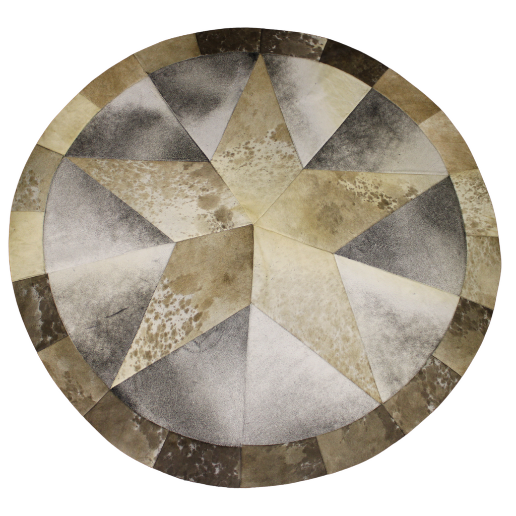 Round Patchwork Star Cowhide Rug - Size 60 Inches Cow Hide Rug