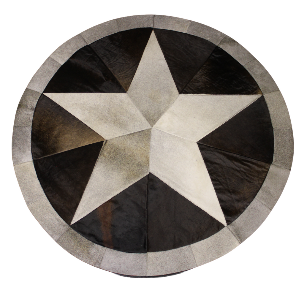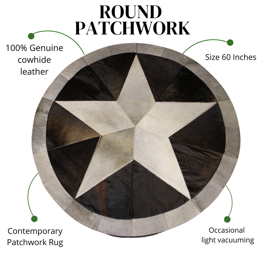 Round Patchwork Star Cowhide Rug - Size 60 Inches Cow Hide Rug